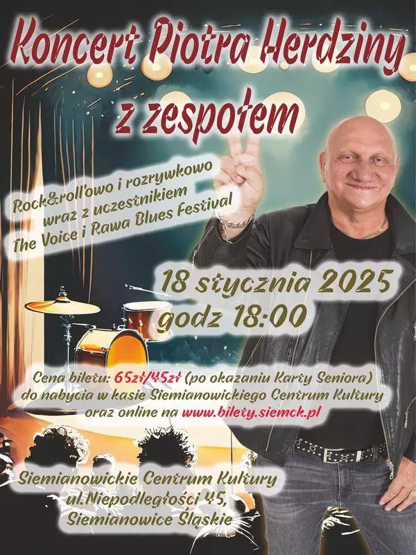 Piotr Herdzina, znany jest m. in. z udziału w programie telewizyjnym The Voice of Poland, jako jeden z nielicznych artystów zaproszony został do udziału w prestiżowym Rawa Blues Festival w katowickim Spodku. Podczas siemianowickiego koncertu artysta zaprezentuje wyjątkowy program pełen rock&rollowej energii, rockowych hitów oraz rozrywkowych utworów.