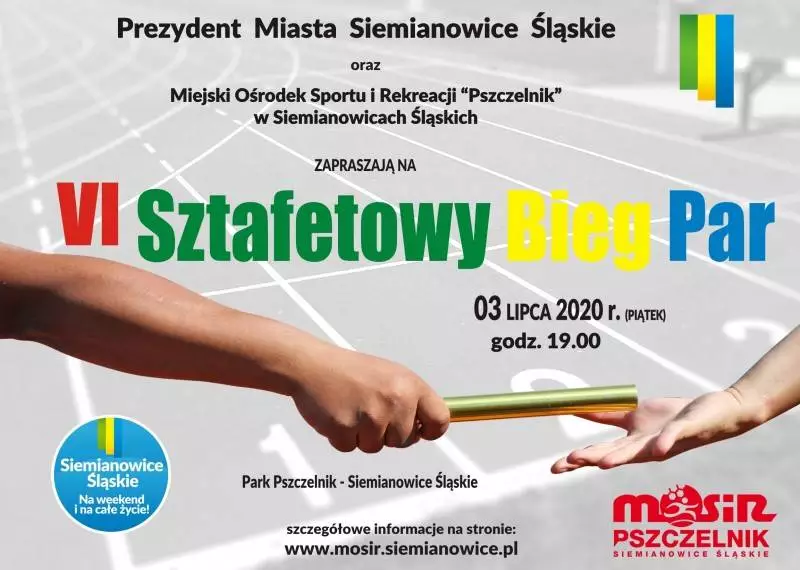 Miejski Ośrodek Sportu i Rekreacji „Pszczelnik” w Siemianowicach Śląskich serdecznie zaprasza wszystkich miłośników aktywnych form spędzania wolnego czasu do wzięcia udziału w VI Sztafetowym Biegu Par.