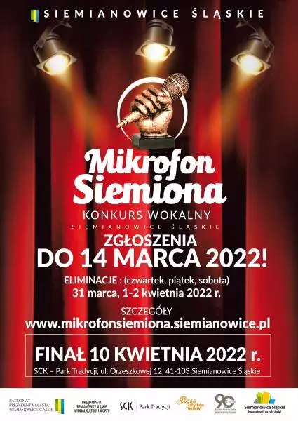 W imieniu Prezydenta Miasta zaprasza się na tegoroczną edycję Konkursu Wokalnego Mikrofon Siemiona. Już po raz ósmy można spotkać się z Uczestnikami w murach Parku Tradycji na przesłuchaniach eliminacyjnych i finale.