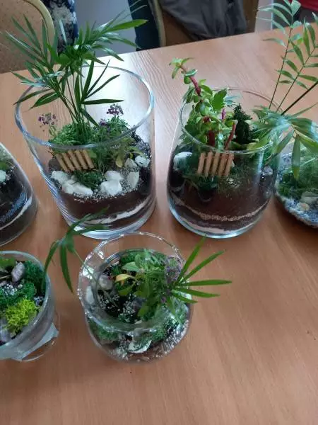 Miniaturowe roślinne kompozycje w szklanych naczyniach wciąż są popularne i cieszą się dużym zainteresowaniem. Mały, zielony ogródek w słoju czy butelce to szalenie oryginalna alternatywa dla typowych roślin w doniczkach. Co więcej, ogród zamknięty w szkle nie tylko zdobi, ale daje możliwość stworzenia i obserwowania samodzielnej, twórczej pracy. Cechą takiego ogrodu, w odróżnieniu od ogrodu typu las w słoiku, zamkniętego korkowym wieczkiem jest to, że wilgotność panująca w otwartym naczyniu jest umiarkowana, ścianki nie ulegają zaparowaniu, nie występuje więc ryzyko rozwoju pleśni, a sadzonki są dobrze widoczne przez cały czas. Specyfiką tego typu układów jest dość wolny wzrost roślin. Kompozycje otwarte wymagają jednak regularnego podlewania – jeśli je zaniedbamy, sadzonki skarłowacieją, a mech uschnie. A mech jest bardzo ważny w tej kompozycji, ponieważ utrzymuje wilgoć.
