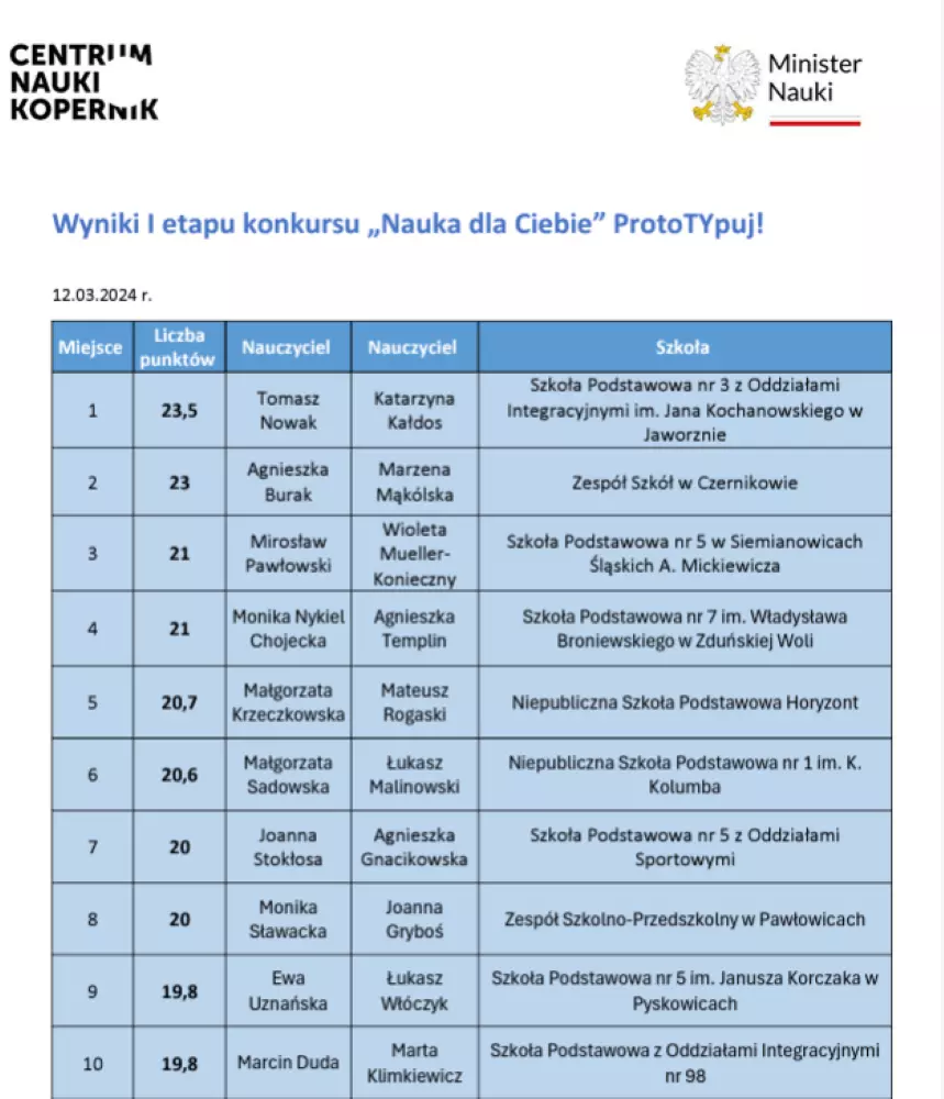 Siemianowicka Piąteczka w ścisłej czołówce laureatów programu Ministra Nauki i Szkolnictwa Wyższego oraz Centrum Nauki Kopernik pt. „ProtoTYpuj”.