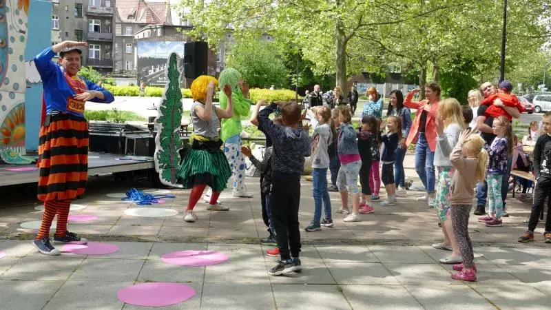Po rocznej przerwie nasi najmłodsi mieli mnóstwo energii do wspólnej zabawy. Na początku swój spektakl pod tytułem "Pszczółka Maja" zaprezentował Teatr Fabryka Kultury. Następnie aktorzy niestrudzeni swoim energicznym show zaprosili dzieci na warsztaty malowania. Każdy, komu zostały jeszcze siły, mógł tradycyjnie wyszaleć się na dmuchańcach.
