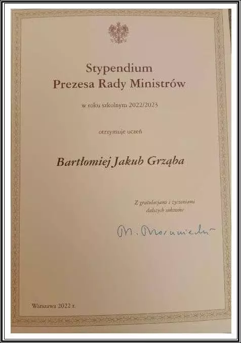 Ważni są wszyscy razem i każdy z osobna. Cieszą małe postępy i wielkie sukcesy. Dlatego okazja taka, jak ta z dnia 28 listopada, kiedy to uczeń naszego liceum znalazł się w gronie wyróżnionych stypendium Prezesa Rady Ministrów jest chwilą ogromnej dumy i satysfakcji.