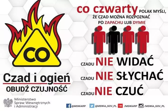 Przed nami coraz chłodniejsze dni, a co za tym idzie palenie w kominkach, piecach czy korzystanie z grzewczych urządzeń gazowych. Niestety każdego roku śmiercionośny czad zbiera swoje tragiczne żniwo. Zróbmy wszystko, aby w tym sezonie zimowym właściwie zabezpieczyć siebie i swoich bliskich przed tym cichym zabójcą.