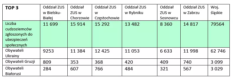 Najwięcej ubezpieczonych obcokrajowców w naszym województwie jest w chorzowskim Oddziale ZUS, bo blisko 16 tys. osób, natomiast najmniej w Oddziale ZUS w Sosnowcu, niespełna 9 tys.