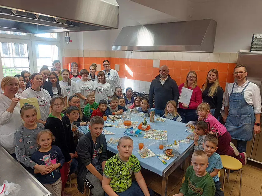 Nad całością wykonywanych przez dzieci zadań czuwali nasi uczniowie Julia Korpok, Staniczek Wiktoria, Roksana Makosz, Nicola Grzechacz z klasy 2TZ, Martyna Jesionek, Aleksandra Wołczyk z klasy 3THR, Natalia Liwińska z klasy 3TZ oraz Waleria Leboszka, Emilia Manes, Anna Eichhorst, Jessika Piekarska z klasy 2KCP. Zaprosiliśmy naszych młodszych kolegów na kolejne spotkanie.