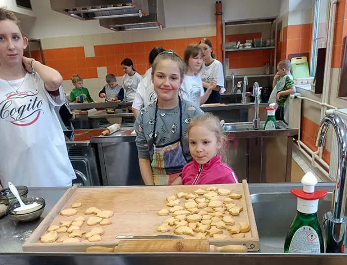 Nauczyciele Bożena Trziszka, Helena Kruszecka oraz Aleksandra Pytlik wraz z młodzieżą z Klubu Wolontariatu Cogito zaproponowali dzieciom przygodę z pieczeniem z okazji nadchodzących Świąt Wielkanocnych. Większość dzieci odwiedziła nas już kolejny raz wraz ze swoimi opiekunami. Dzieci przygotowywały samodzielnie pizze oraz kruche ciasteczka.