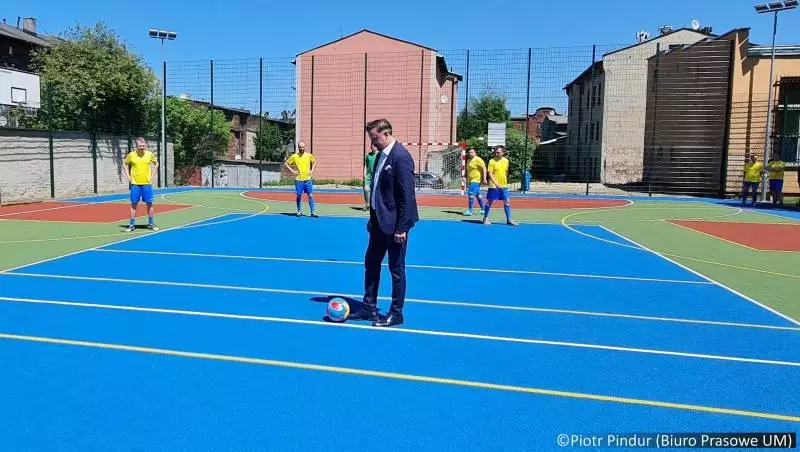 Uroczystego otwarcia obiektu, wspólnie przecinając wstęgę, dokonali prezydent Rafał Piech, przewodniczący Rady Miasta Adam Cebula i dyrektor szkoły Danuta Kopyczok. Ksiądz Michał Kowalski poświęcił boisko, podkreślając, że jego uroczyste otwarcie przypada w 102. rocznicę urodzin świętego Jana Pawła II, który również był zapalonym sportowcem. Ksiądz Kowalski wyraził nadzieję, że duch Jana Pawła II będzie czuwał nad bezpieczeństwem wszystkich korzystających z tego obiektu.