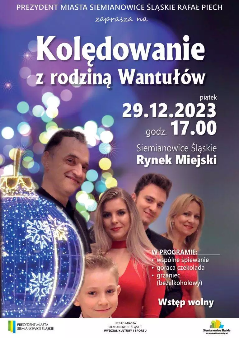 W piątek, 29 grudnia, o godzinie 17:00 na Rynku Miejskim odbędzie się wyjątkowy koncert kolęd w wykonaniu znanej, lubianej i niezwykle utalentowanej Rodziny Wantułów.