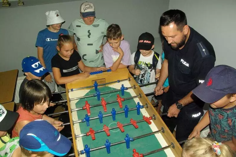 Po załatwieniu formalności, zapoznaniu się z regulaminem oraz pogadance Policji na temat "Kręci mnie bezpieczeństwo nad wodą" rozpoczęły się gry i zabawy, mające na celu integrację dzieci i młodzieży.