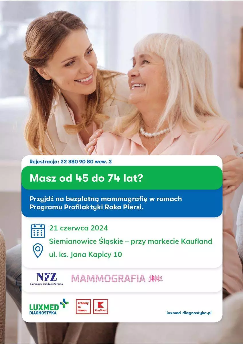 LUX MED Diagnostyka zaprasza Panie w wieku od 45 do 74 lat na bezpłatne badania mammograficzne w ramach Programu Profilaktyki Raka Piersi finansowanego przez NFZ.