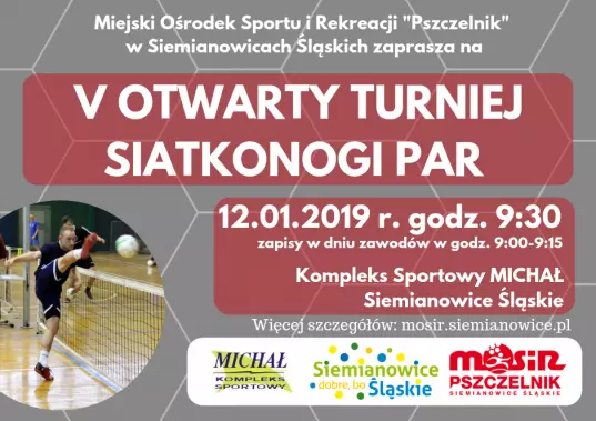 Szczegółowe informacje dostępne są na stronie: http://www.mosir.siemianowice.pl/?v-otwarty-turniej-siatkonogi-par,473