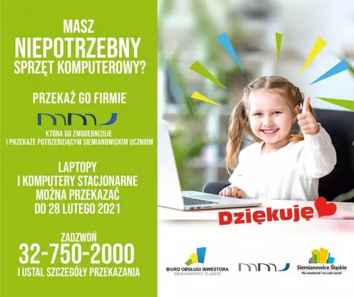 - Do 28 lutego będziemy zbierać od wszystkich zainteresowanych niepotrzebne laptopy i komputery stacjonarne, które następnie naprawimy i zmodernizujemy. Mówiąc wprost damy im drugie życie, aby mogły pomóc najmłodszym w nauce. W przyszłości to właśnie nasze dzieci będą stanowić o sile polskiej gospodarki, więc warto wspierać ich edukację - komentuje Michał Janos z firmy MMJ.