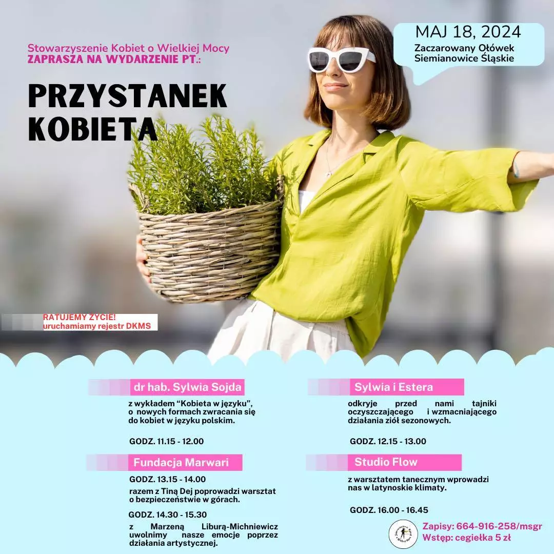 Wstęp za symboliczną cegiełkę wartości 5 zł, zapisy i szczegółowe informacje, tel. 664 916 258 lub poprzez messenger i profil Facebook Stowarzyszenia Kobiet o Wielkiej Mocy.